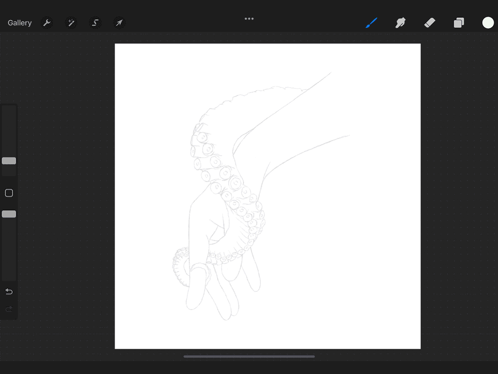 I created a mood board that combined deep-sea imagery, bright neon colors, and retro-modern themed design. While doing some research, I found that many cultures consider the squid to be a symbol of deceit. This inspired the idea of a squid controlling a hand like a puppeteer, which became the basis for the album artwork. The concept was sketched, refined, and colored using Procreate, and then finalized in Photoshop.