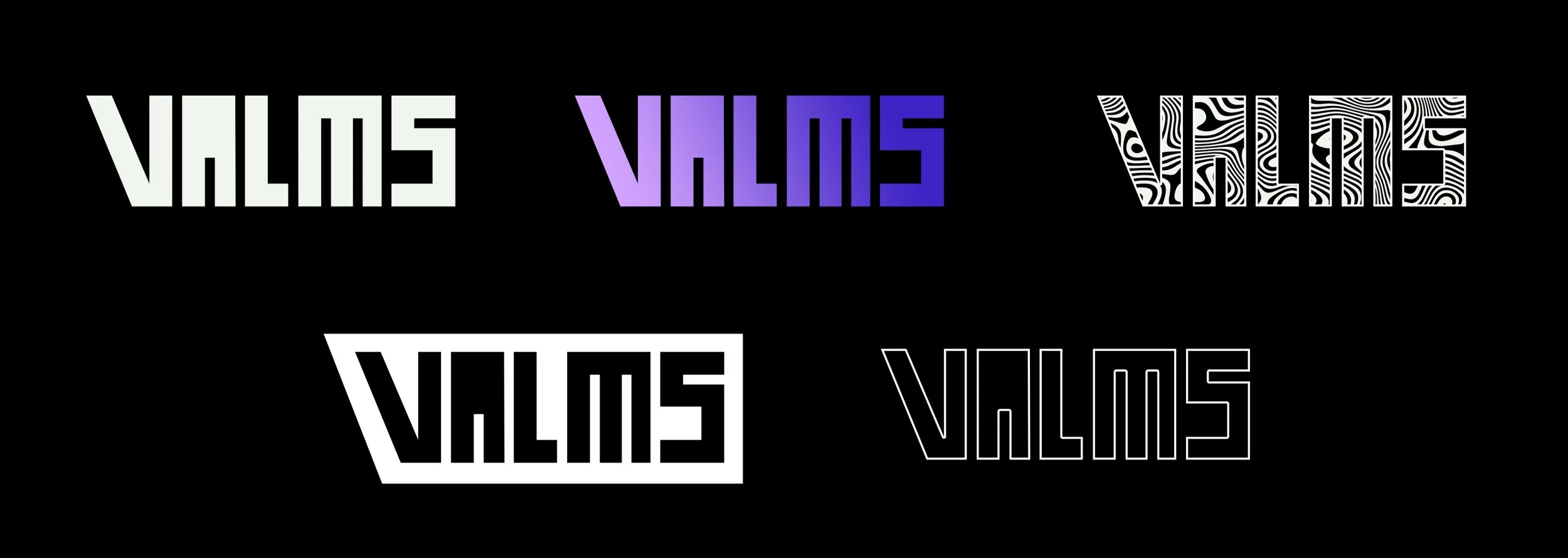 To create the logo for Valms, I experimented with geometrical and LCD-style lettering, which ultimately led to the final logo.